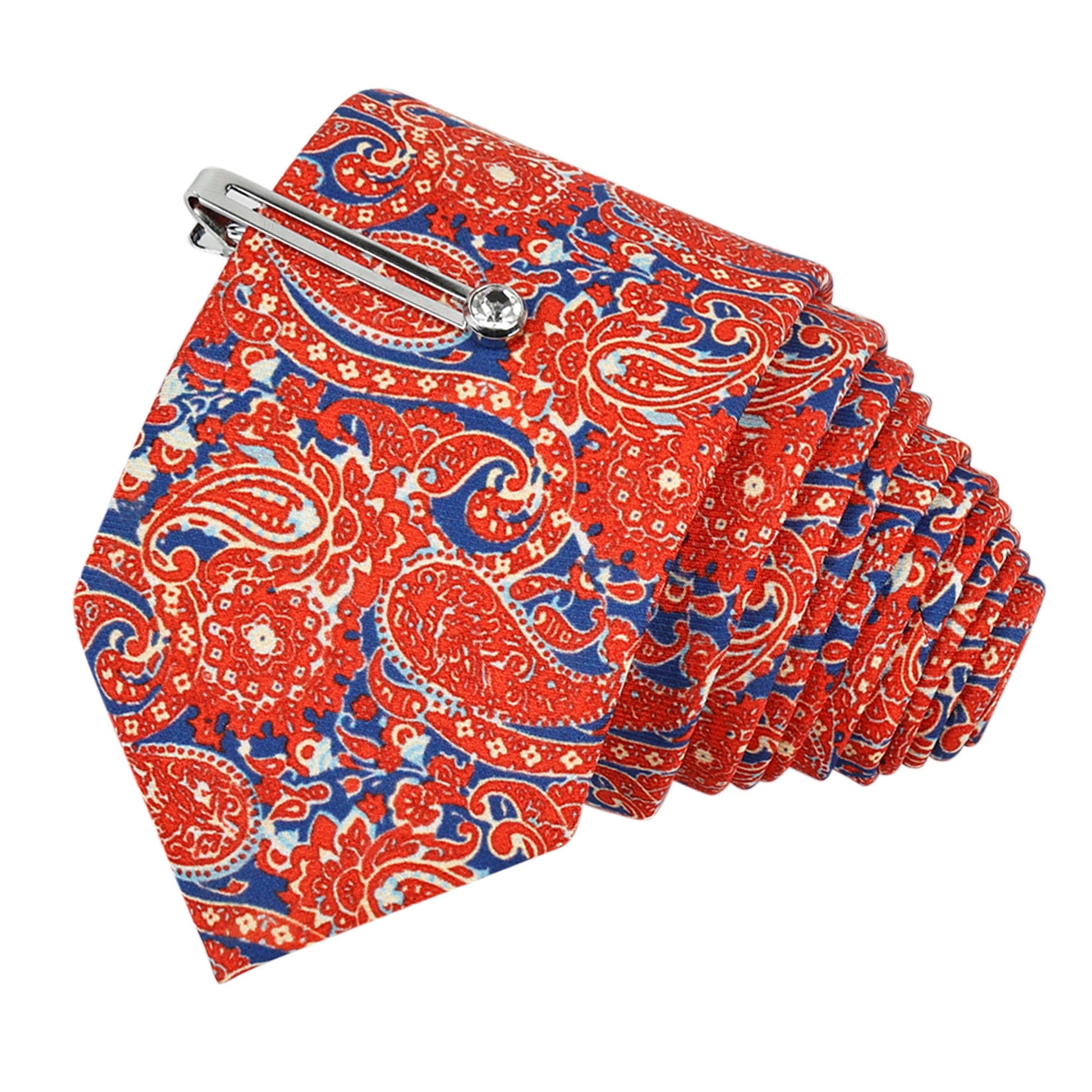 Blaze Orange Luxury Italian Silk Necktie Set With Pocket Square, Silver Tie Pin, Cufflinks & Brooch