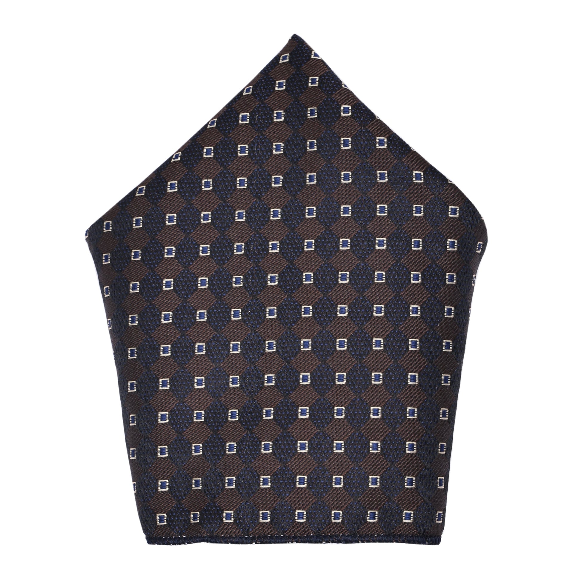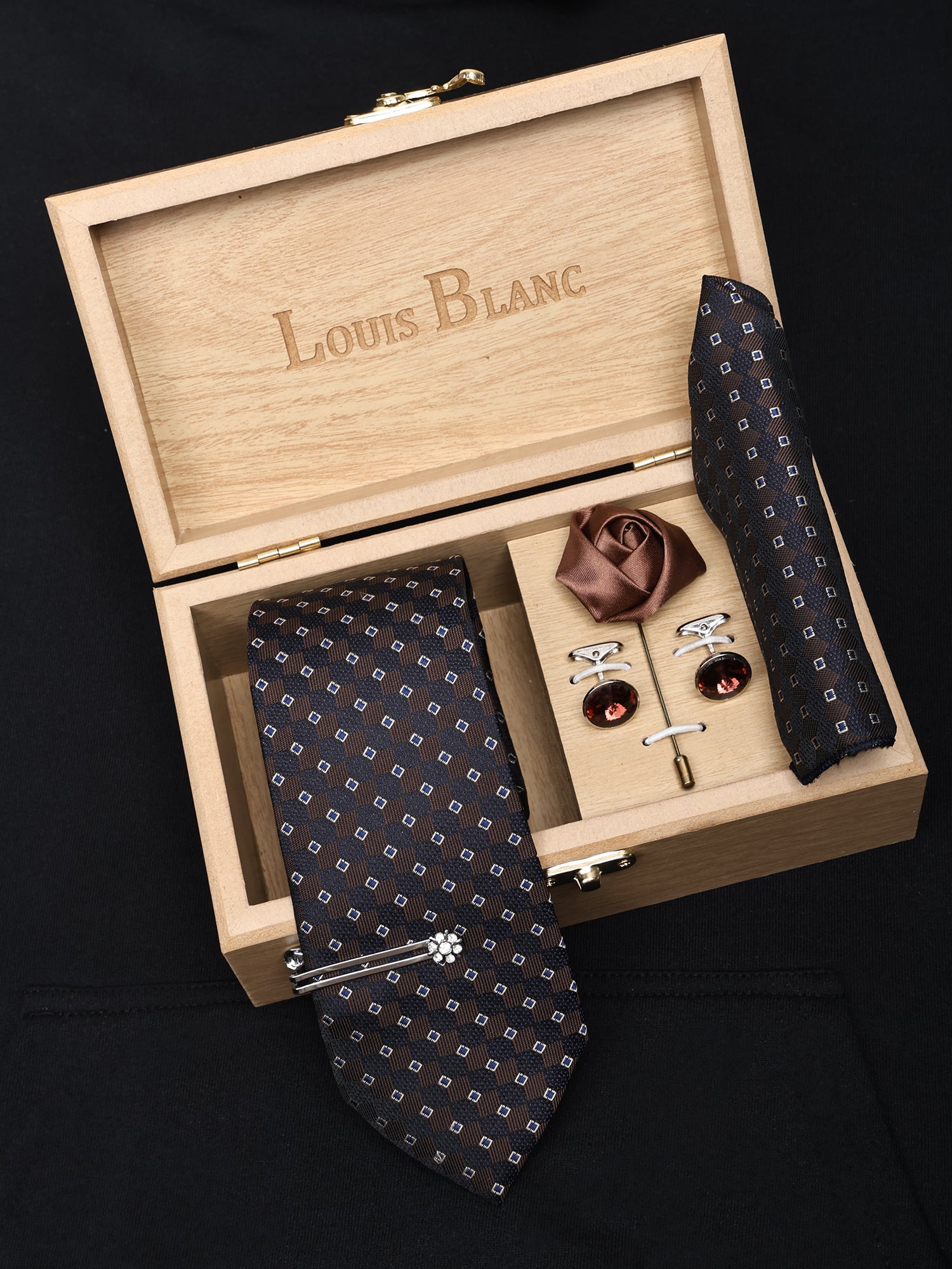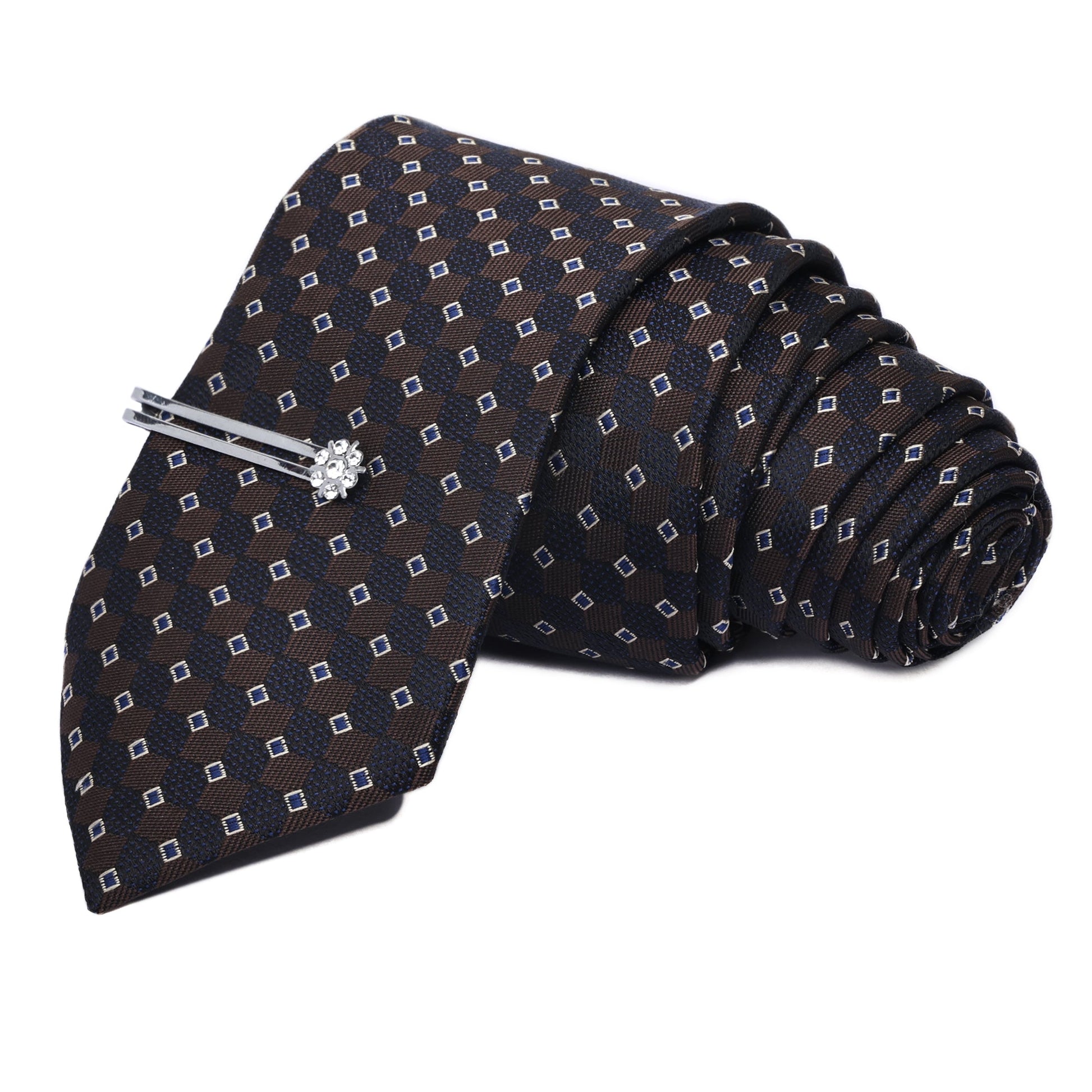 Brown Italian Silk Neckties Set Pocket Square Silver Tiepin