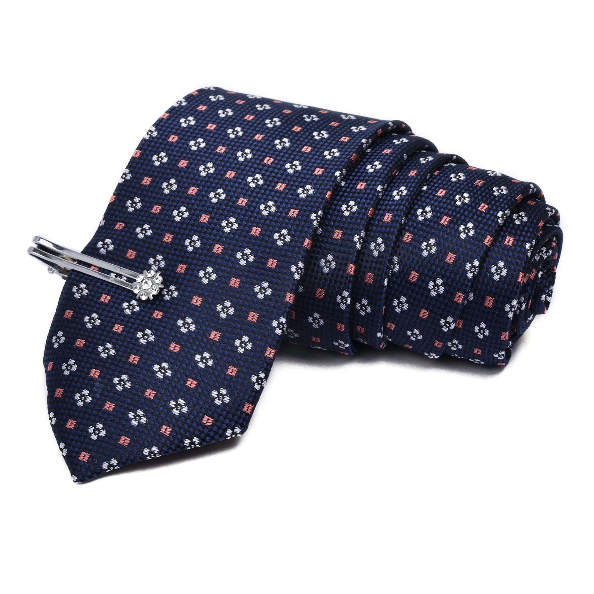- Package includes: Necktie with Pocket Square, Chrome Tiepin, and Signature Brand Box