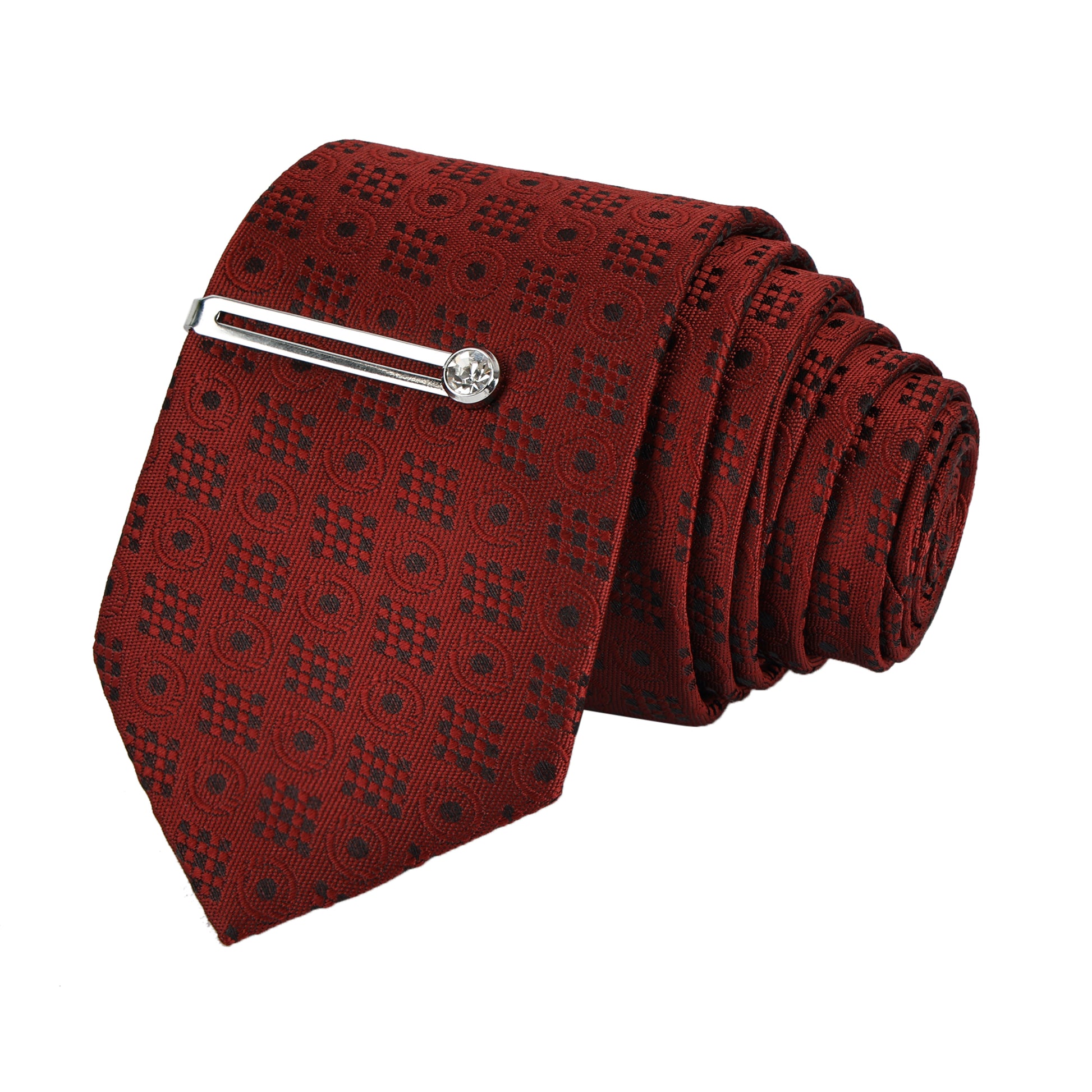 - Package includes: Necktie with Pocket Square, Chrome Tiepin, and Signature Brand Box