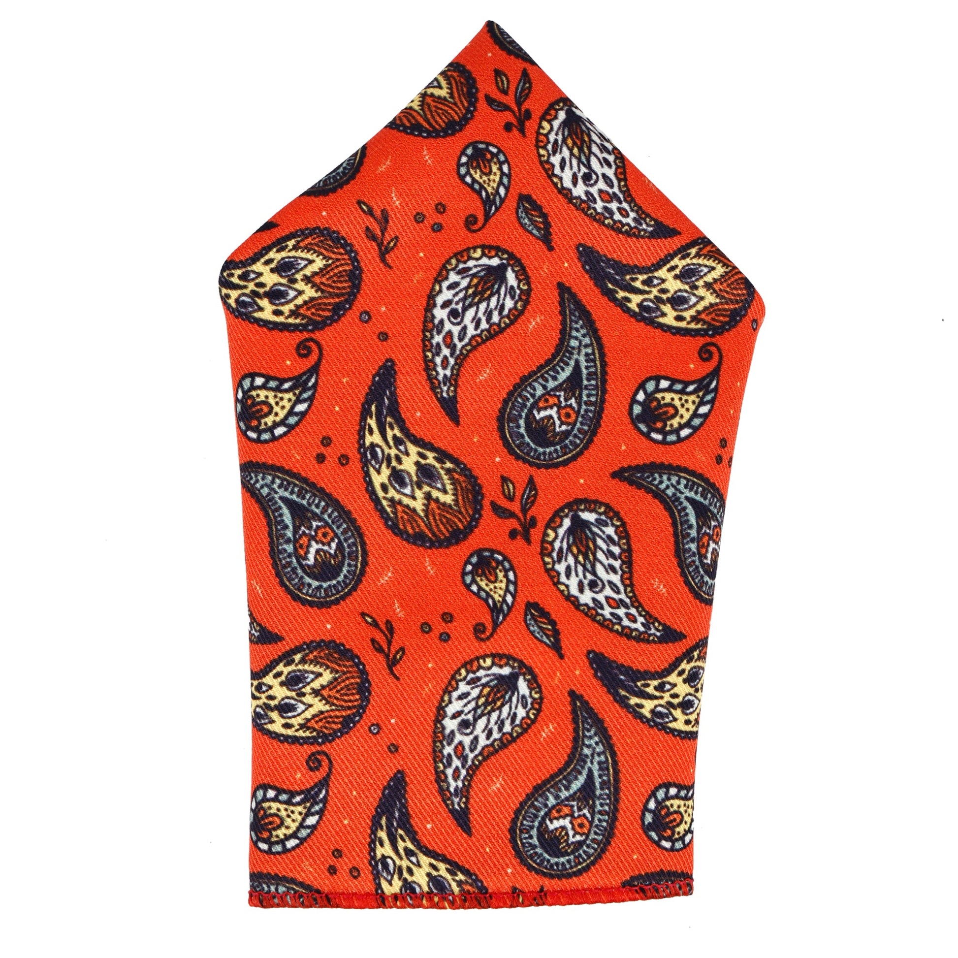 International Orange Luxury Italian Silk Necktie Set With Pocket Square Silver Tie Pin, Cufflinks & Brooch