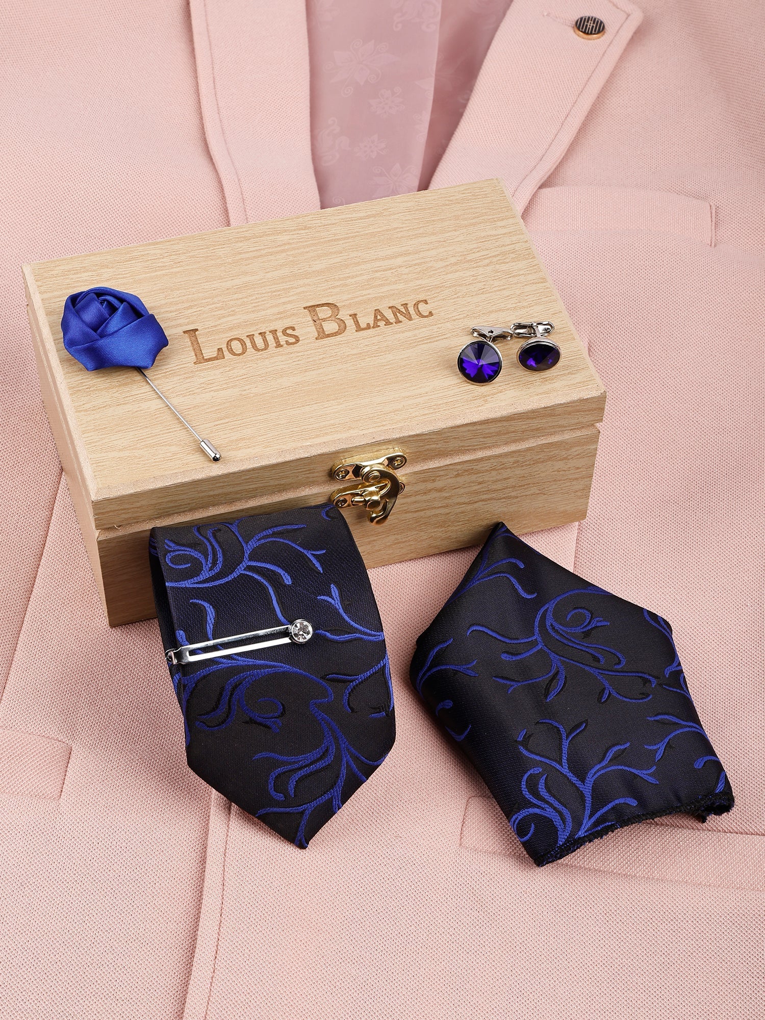Marine Blue Italian Neckties With Pocket Square Silver Tie Pin, Cufflinks & Brooch