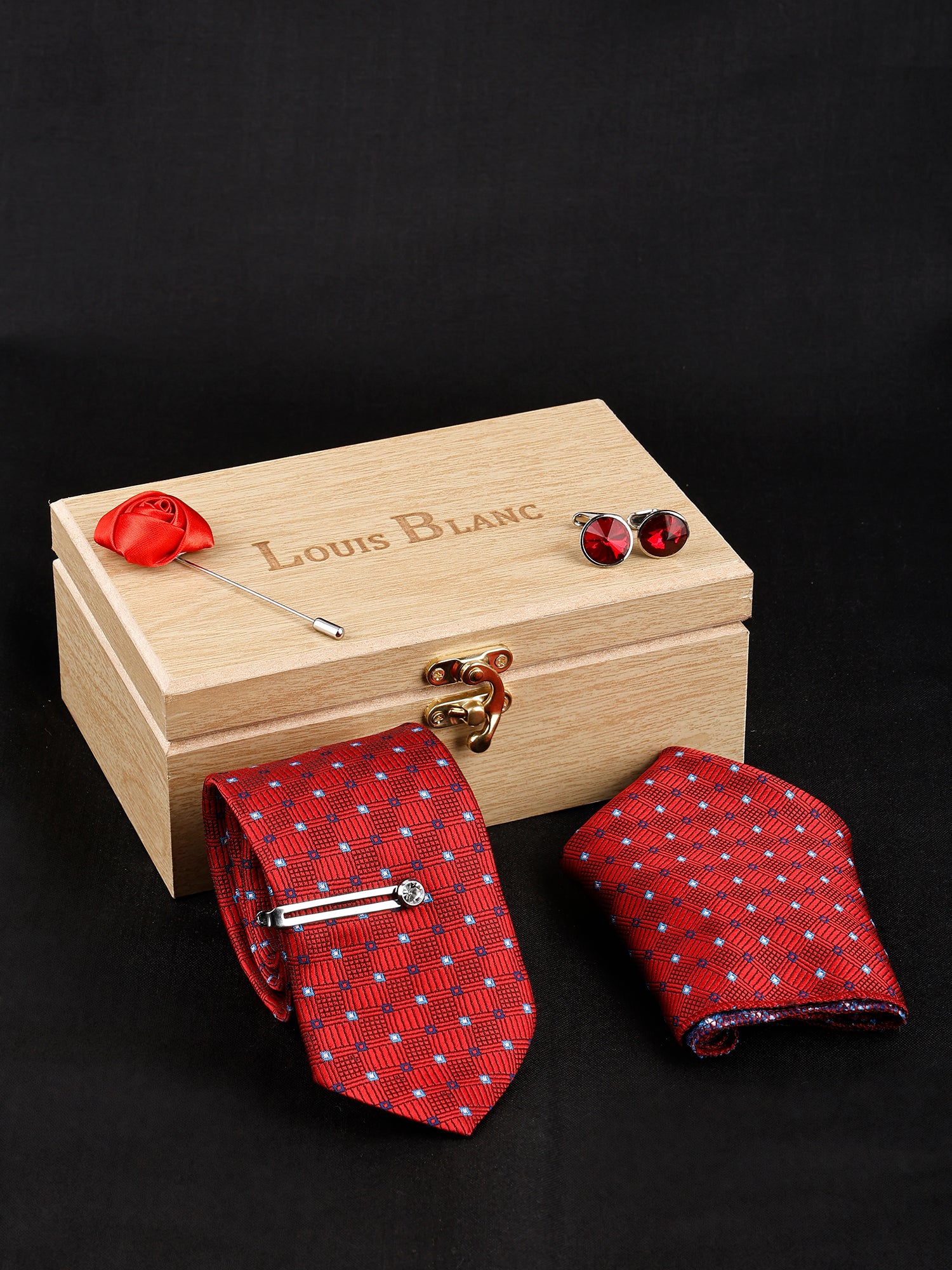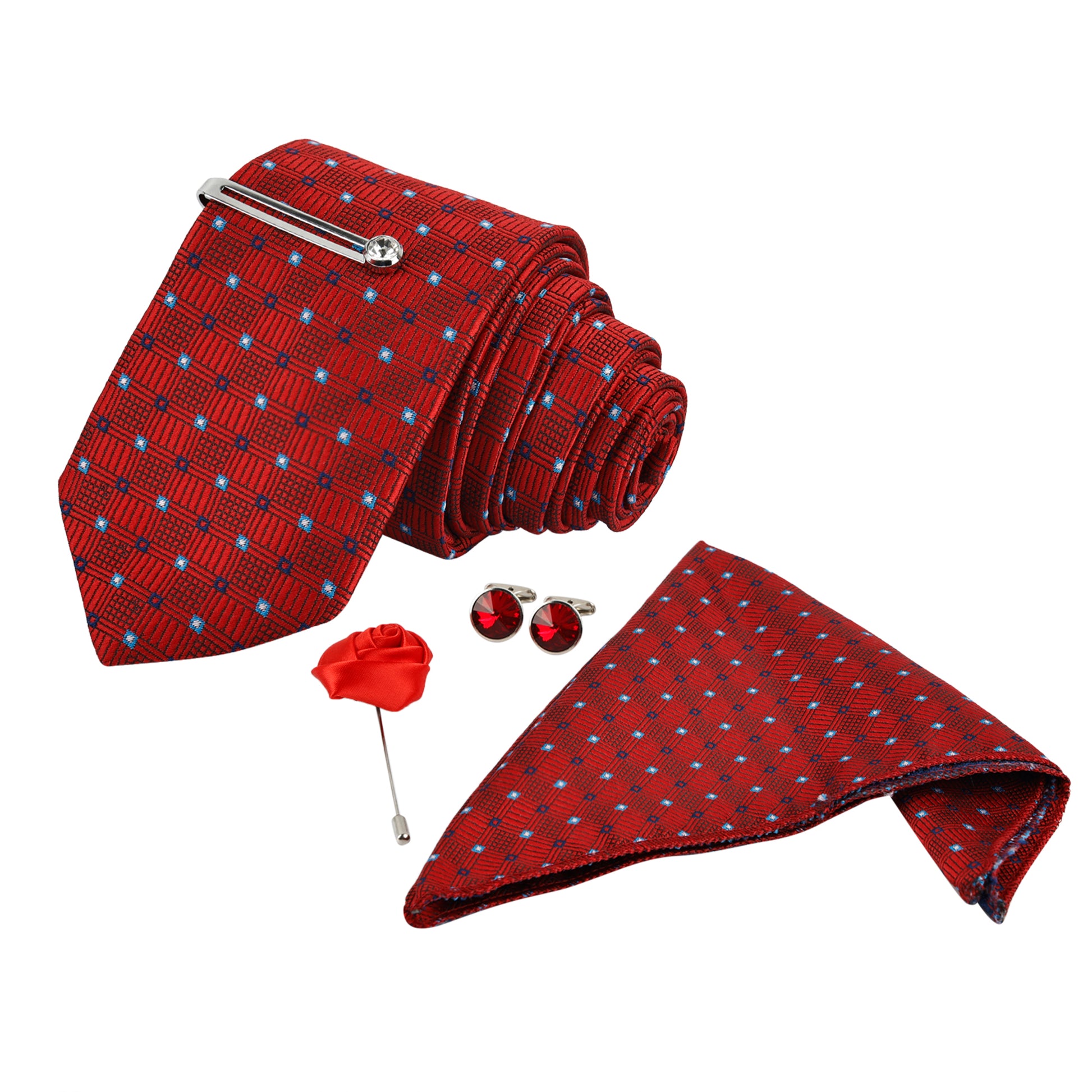 Texture Maroon Italian Necktie With Pocket Square Silver Tie pin, Cufflinks & Brooch